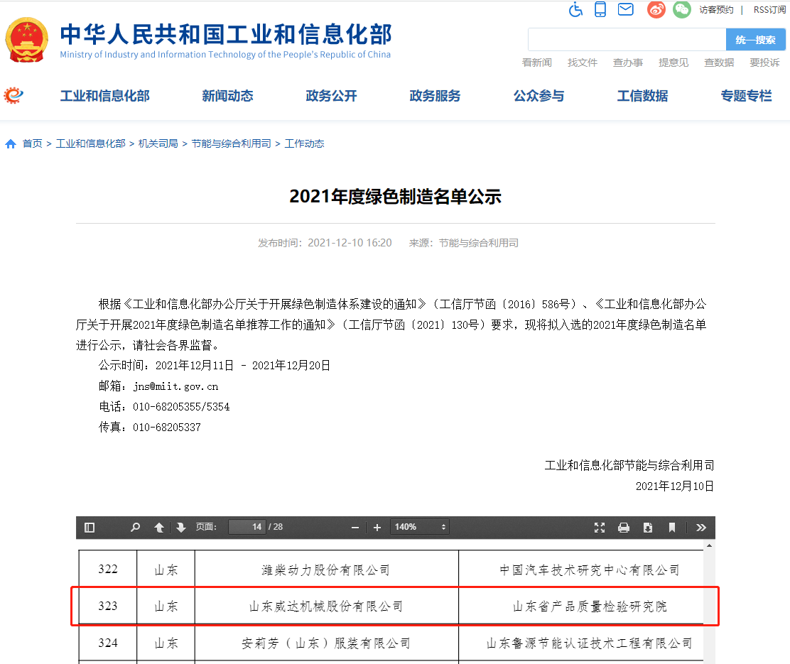 近日,国家工信部公示了2021年度绿色制造名单,yL23411永利官网登录机械股份有限公司(yL23411永利官网登录002026)榜上有名,成功入选国家级绿色工厂。